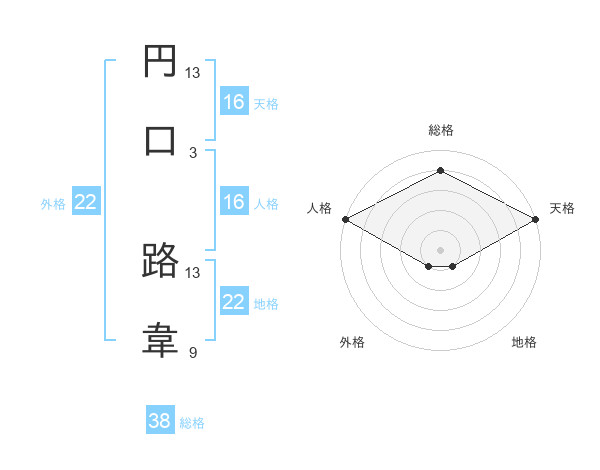 円口 路韋さんの天格は16画の5点!