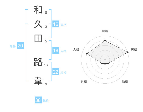 和久田 路韋さんを姓名の画数から五運を鑑定