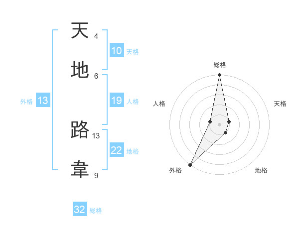 天地 路韋さんの総格は32画の5点!