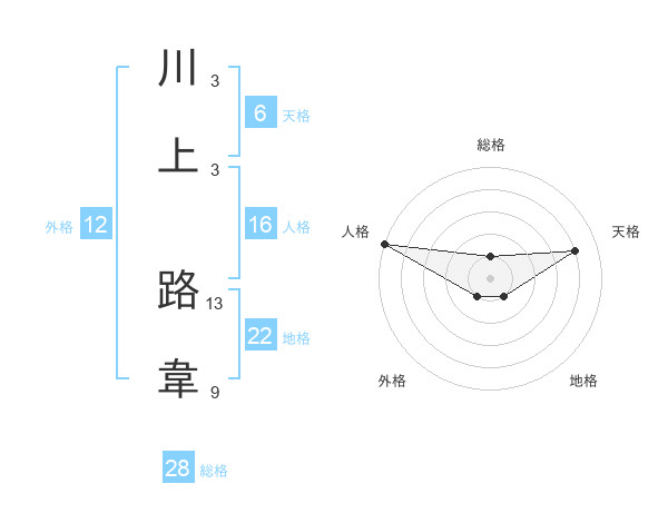川上 路韋さんの総格は28画の1点!
