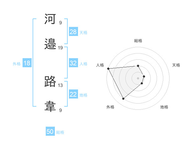 河邉 路韋さんの総格は50画の2点!