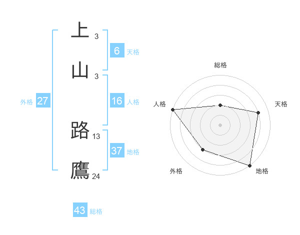 上山 路鷹さんを姓名の画数から五運を鑑定