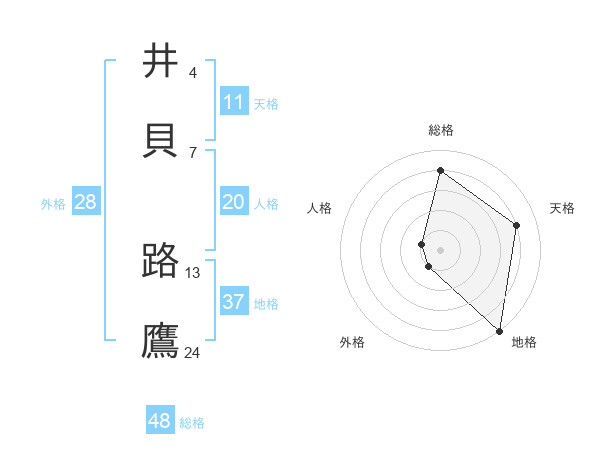 井貝 路鷹さんを姓名の画数から五運を鑑定