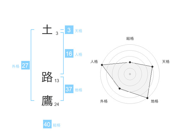 土 路鷹さんの総格は40画の2点!