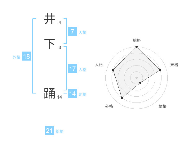 井下 踊さんの総格は21画の5点!