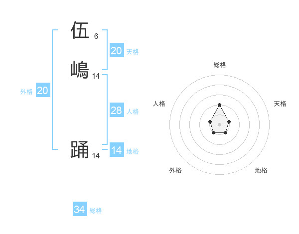 伍嶋 踊さんの総格は34画の2点!