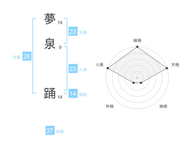 夢泉 踊さんの総格は37画の5点!