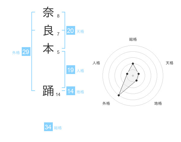 奈良本 踊さんの総格は34画の2点!