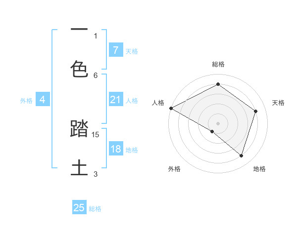 一色 踏土さんの総格は25画の4点!