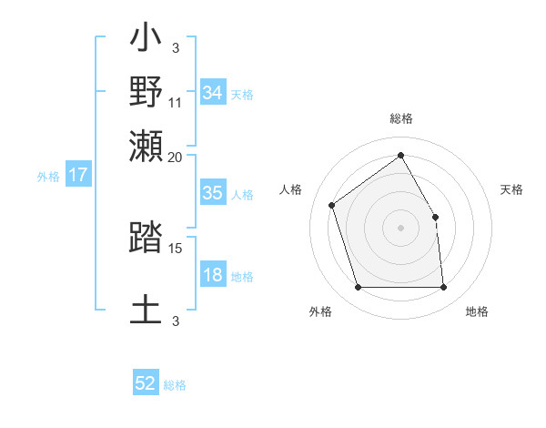 小野瀬 踏土さんを姓名の画数から五運を鑑定