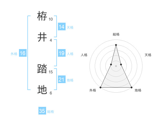 栫井 踏地さんを姓名の画数から五運を鑑定