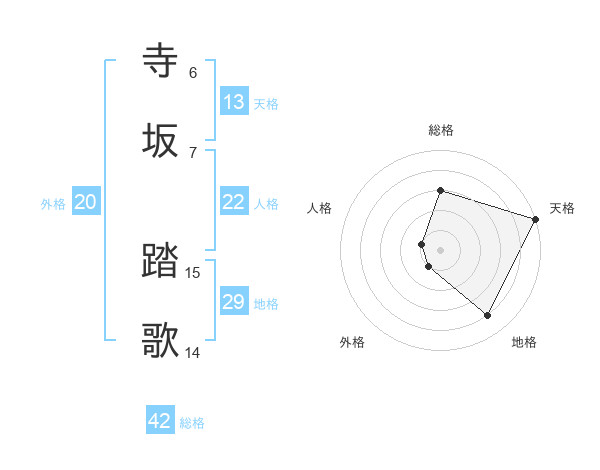 寺坂 踏歌さんを姓名の画数から五運を鑑定