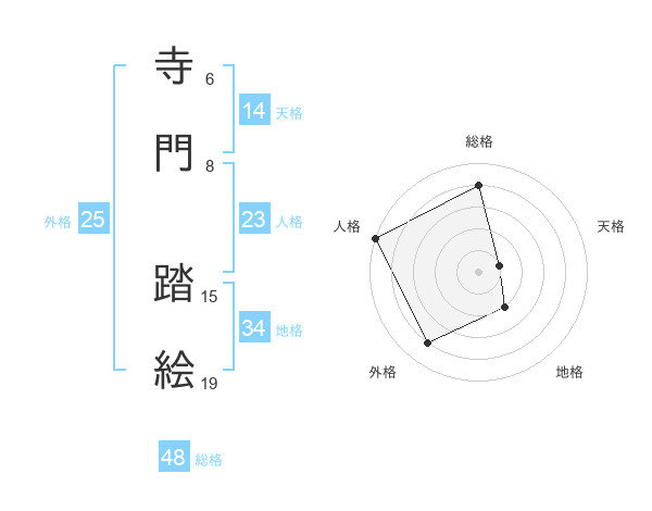 寺門 踏絵さんの総格は48画の4点!