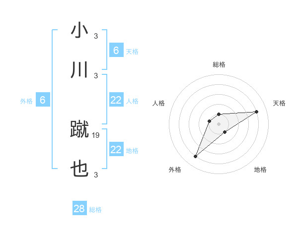 小川 蹴也さんを姓名の画数から五運を鑑定