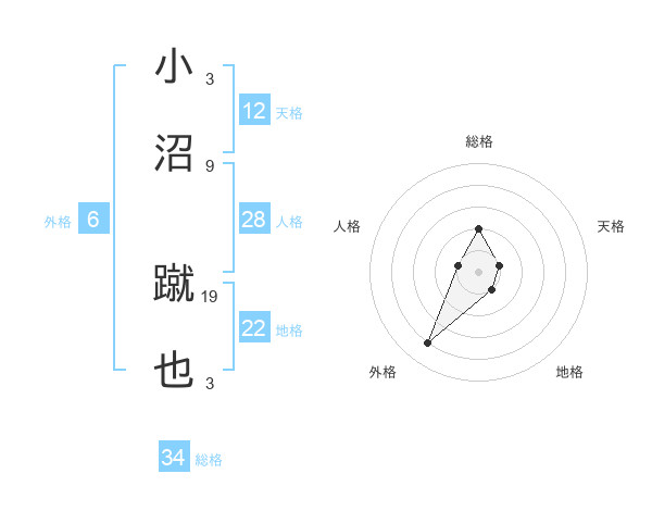 小沼 蹴也さんを姓名の画数から五運を鑑定