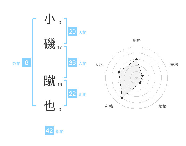 小磯 蹴也さんの外格は6画の4点!