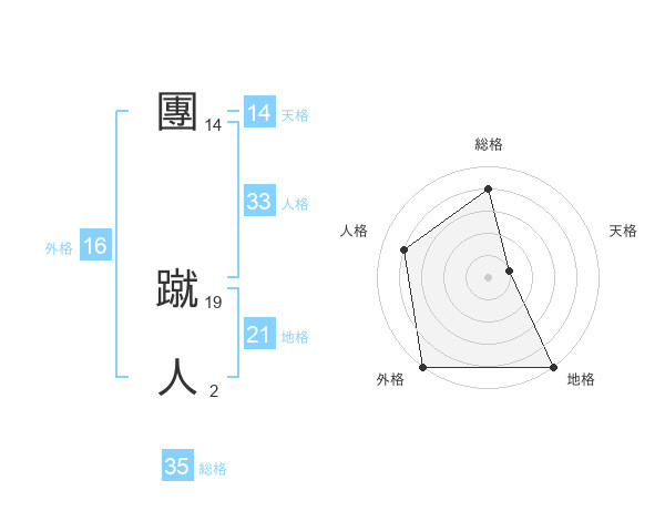 團 蹴人さんの外格は16画の5点!