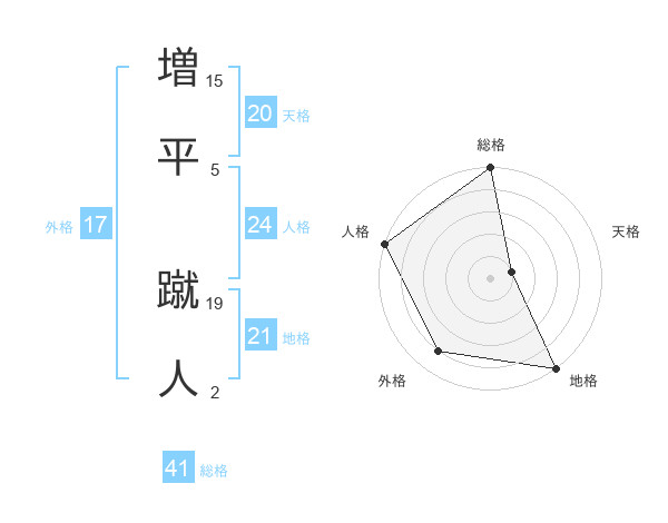 増平 蹴人さんの外格は17画の4点!