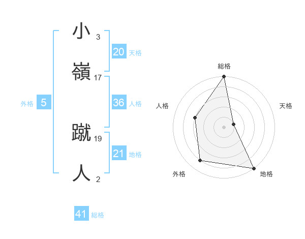 小嶺 蹴人さんを姓名の画数から五運を鑑定