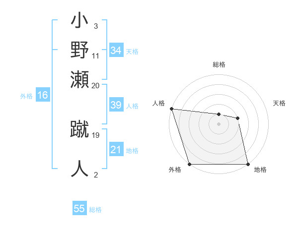 小野瀬 蹴人さんを姓名の画数から五運を鑑定