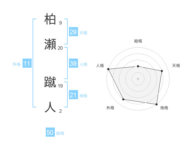 柏瀬 蹴人さんの総格は50画の2点!