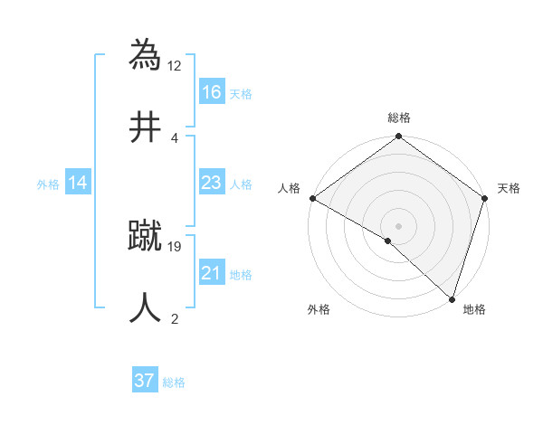為井 蹴人さんの総格は37画の5点!