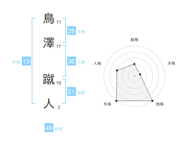 鳥澤 蹴人さんの外格は13画の5点!