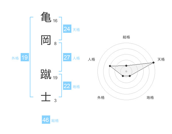 亀岡 蹴士さんを姓名の画数から五運を鑑定