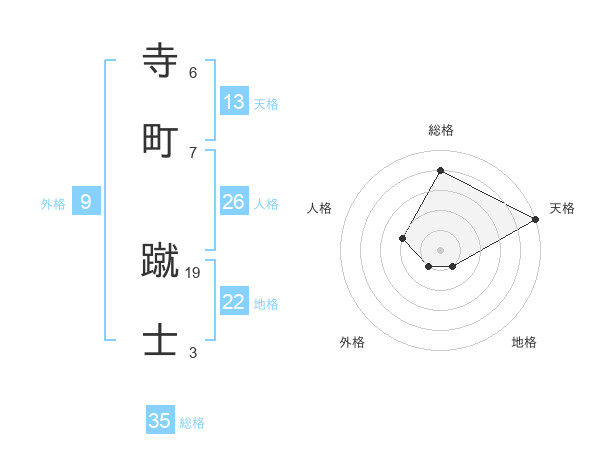 寺町 蹴士さんの総格は35画の4点!