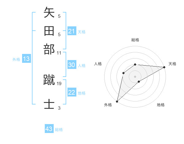 矢田部 蹴士さんを姓名の画数から五運を鑑定