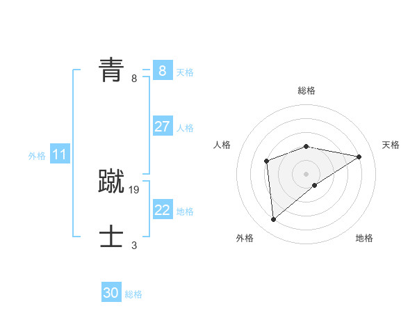 青 蹴士さんの地格は22画の1点!