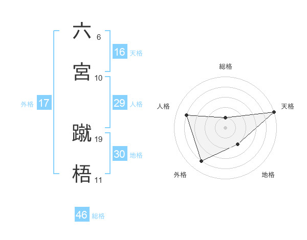 六宮 蹴梧さんを姓名の画数から五運を鑑定