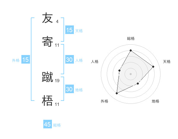 友寄 蹴梧さんの総格は45画の4点!