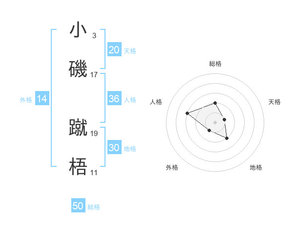 小磯 蹴梧さんの総格は50画の2点!