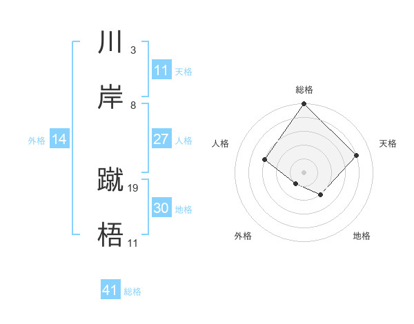 川岸 蹴梧さんの総格は41画の5点!