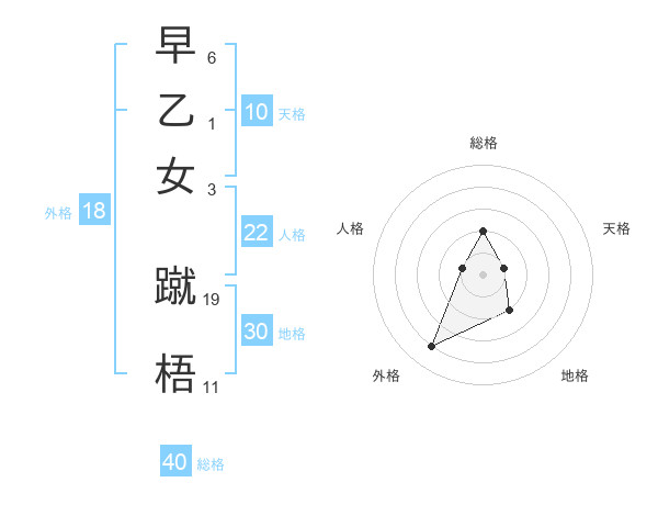 早乙女 蹴梧さんの総格は40画の2点!
