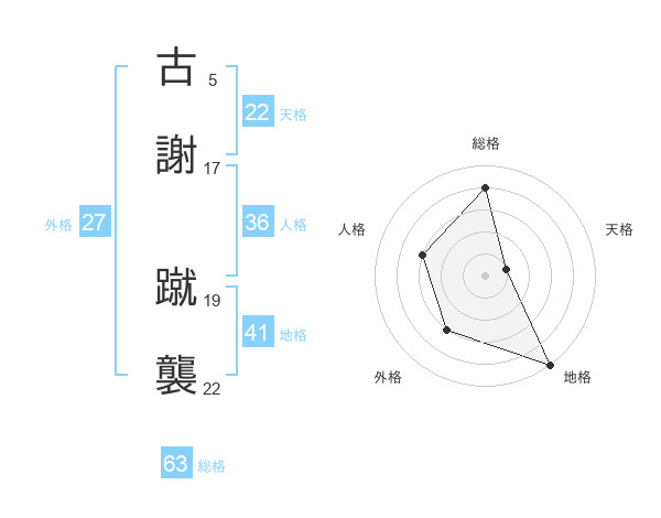 古謝 蹴襲さんを姓名の画数から五運を鑑定