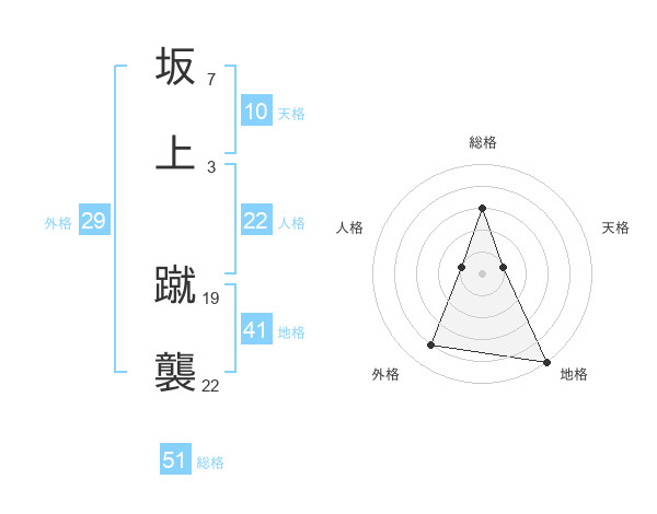坂上 蹴襲さんの総格は51画の3点!