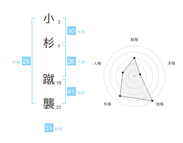 小杉 蹴襲さんを姓名の画数から五運を鑑定