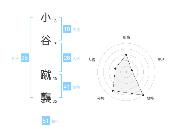 小谷 蹴襲さんを姓名の画数から五運を鑑定