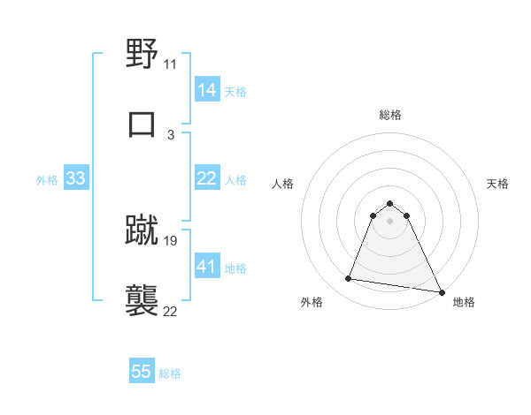 野口 蹴襲さんを姓名の画数から五運を鑑定