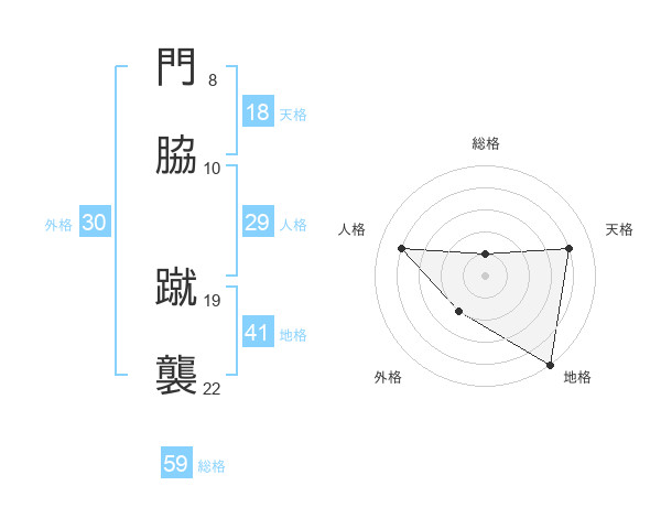 門脇 蹴襲さんを姓名の画数から五運を鑑定