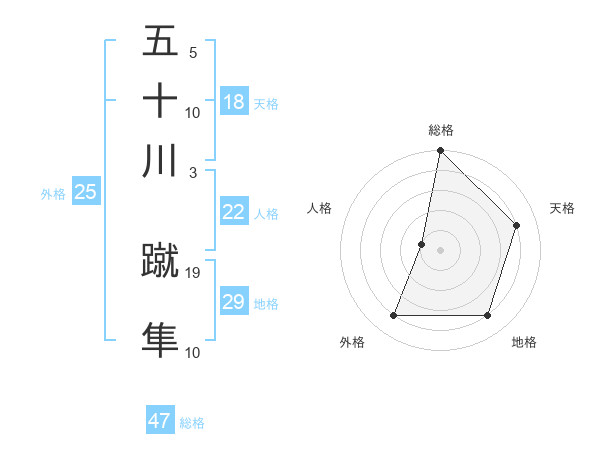 五十川 蹴隼さんを姓名の画数から五運を鑑定
