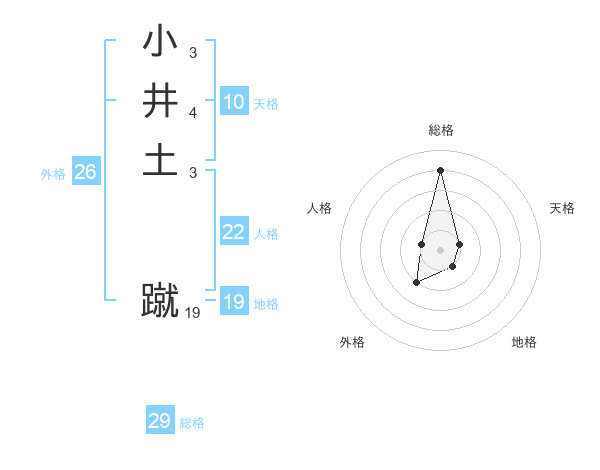 小井土 蹴さんを姓名の画数から五運を鑑定