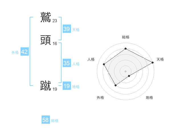 鷲頭 蹴さんの総格は58画の4点!