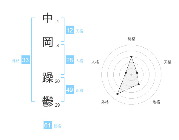 中岡 躁鬱さんを姓名の画数から五運を鑑定