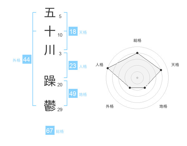 五十川 躁鬱さんを姓名の画数から五運を鑑定