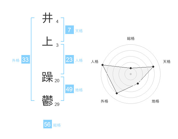井上 躁鬱さんの天格は7画の4点!