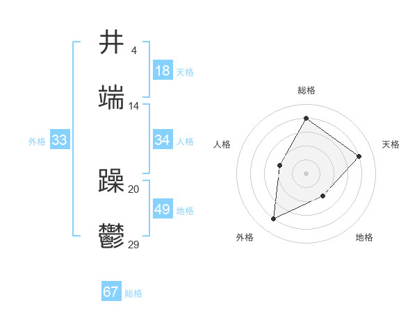 井端 躁鬱さんの総格は67画の4点!