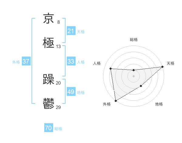 京極 躁鬱さんの総格は70画の1点!